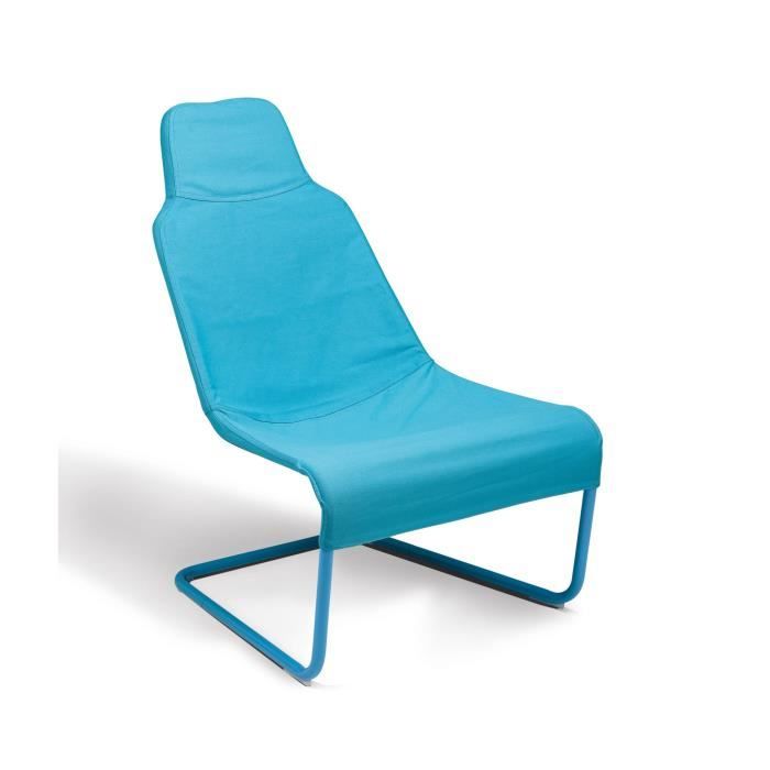 Fauteuil confort relaxation - Structure métallique, assise dossier appui-tete en tissus - Bleu ciel