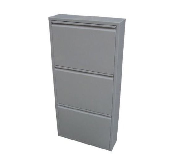 Meuble a Chaussure Structure en panneaux de particules revetus papier ton bois. 3 abattants - Coloris : Blanc - Forme : Rectangulaire - Motif : Uni - Dimensions : L.63 x Prof. 24 x Ht 120 - Garantie : 1 an - Accessoires livrés : 1 notice d'assemblage et 1 sac de quincailleries