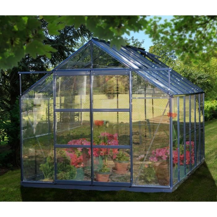 SEKURIT Serre grise 8,88 m² avec base
