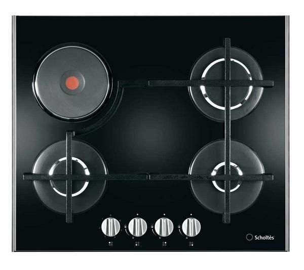 Scholtes - Table de cuisson mixte gaz et électrique TV631EGHBK - noir