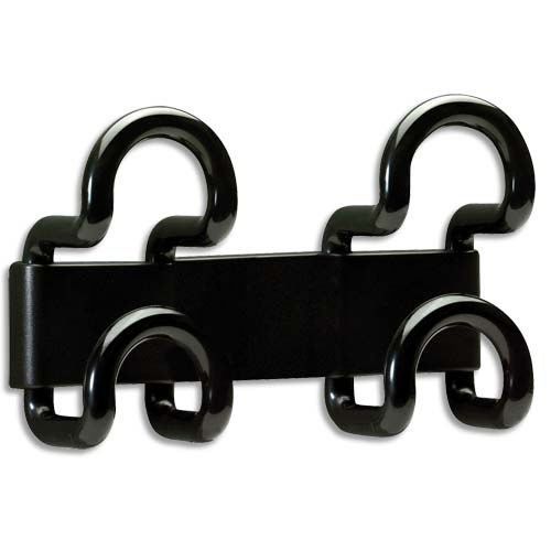 En ABS, noir Patere double, robuste, esthétique Vis et chevilles fournies Bloc de 2 pateres Dimensions (h x l) : 14,6 x 23 cm