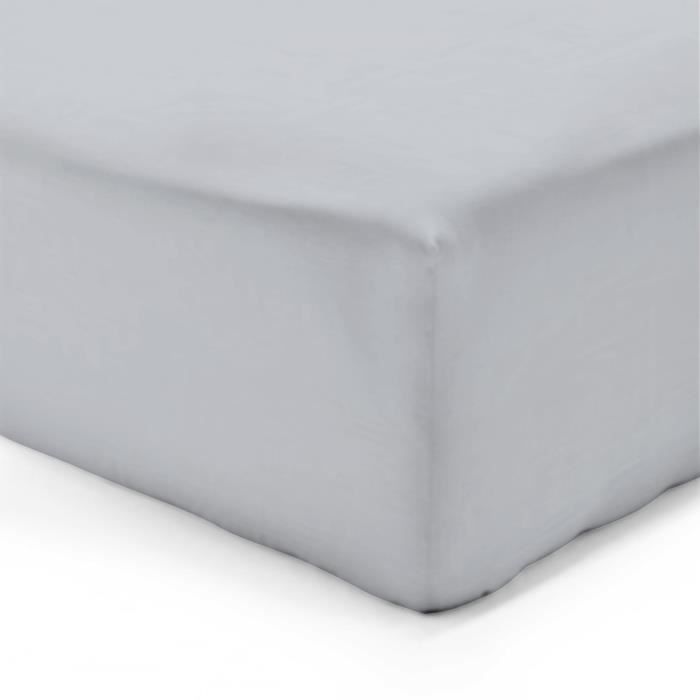 Drap Housse 140x190cm gris perle - 2 personnes - Composition 100% coton - Tissage serré 57 fils/cm² - Lavable 40° - Teinture réactive - Bonnet de 25cm - Excellente résistance des couleurs au lavage