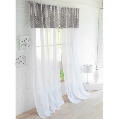 Voilage uni à nouettes 140x180cm à effet cantonnière pois
