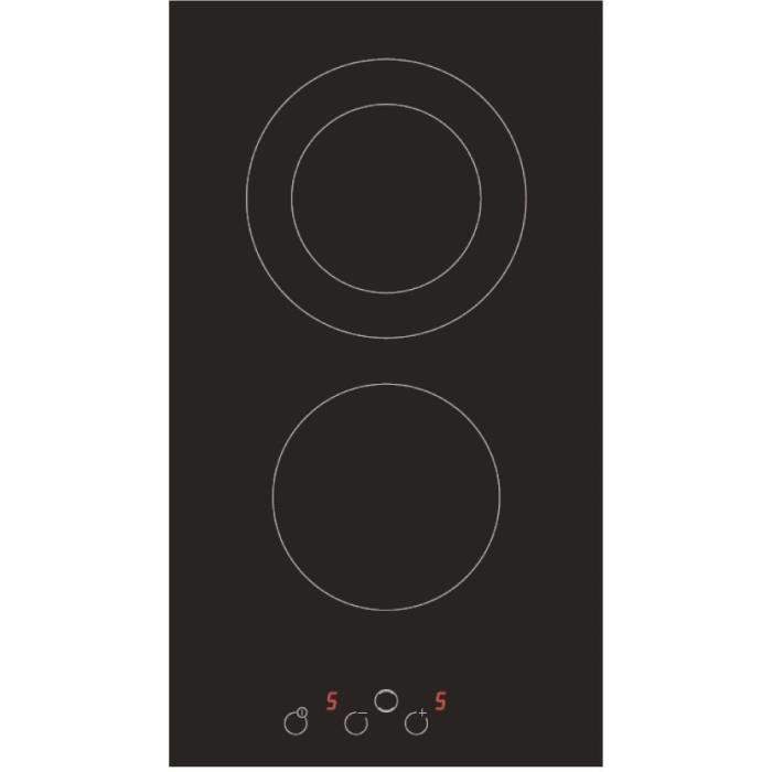 Table de cuisson domino - Vitrocéramique - 2 Foyers Hi Light - Touches sensitives - 9 positions - Verrouillage on /off - Sécurité anti débordement - Foyer avant : 1200 W Hi Light - Foyer arri?re : 1700 W - Encastrement : 270 x 490 cm - Puissance Totale : 3000 W -