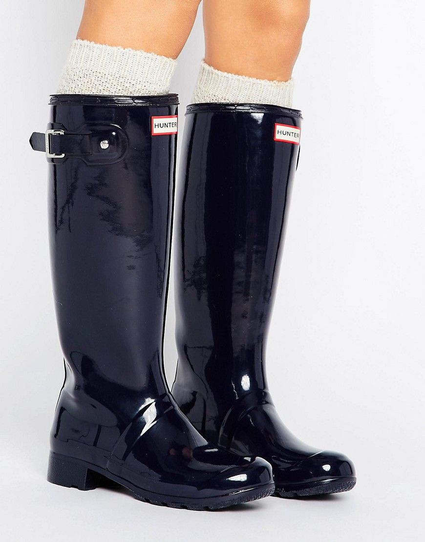 • Hunter - Bottes authentiques en caoutchouc brillant coupe haute avec sangle de réglage - Bleu marine