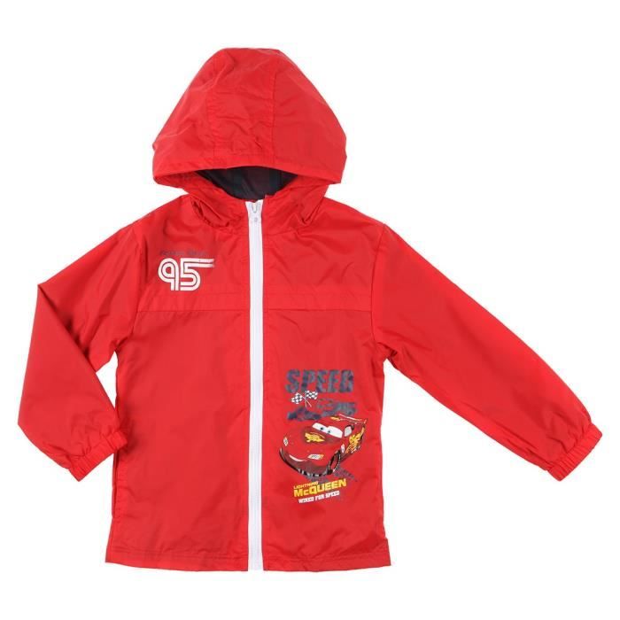 Coupe Vent 100% nylon rouge, col capuche. Manches longues.