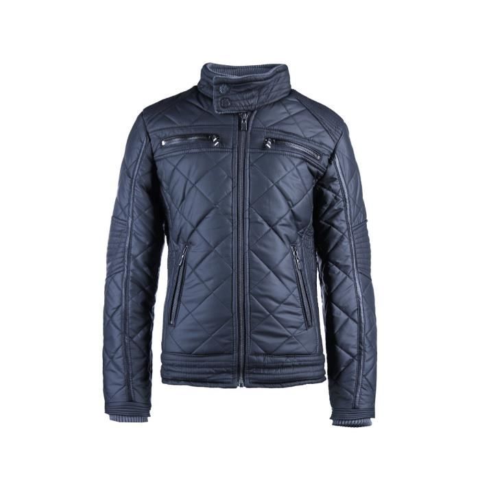 Blouson col montant, 100 % polyester, noir. Zip, 4 poches.