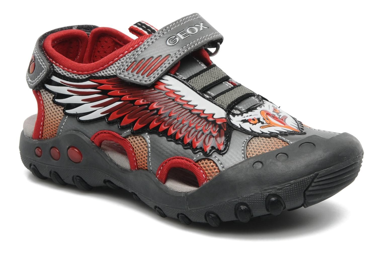 Des super sandales avec un aigle majestueux ? Ça, ça va forcément plaire à votre fiston. Idéales pour la belle saison avec leurs empiècements ajourés, les sandales Geox J Sand. Kyle A sont montées sur une semelle respirante pour un maximum de confort. A scratcher à ses pieds sans attendre ou à glisser dans sa valise pour la colo, vite on clique pour les sandales Geox J Sand. Kyle A.