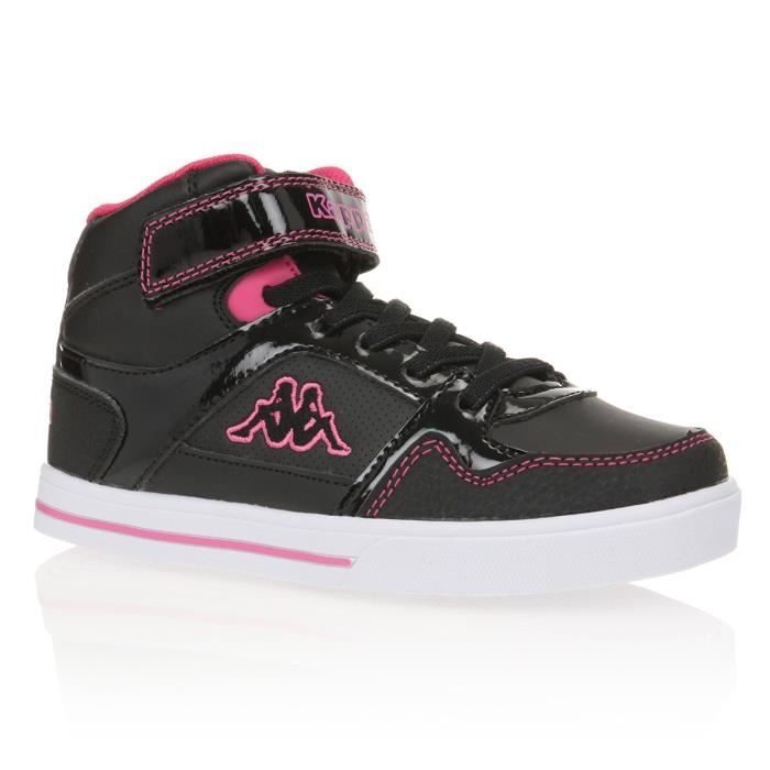Baskets montantes en synthétique avec logo brodé sur le côté et surpiqûres contrastantes, coloris noir et rose. Fermeture par lacets et bride scratchée.