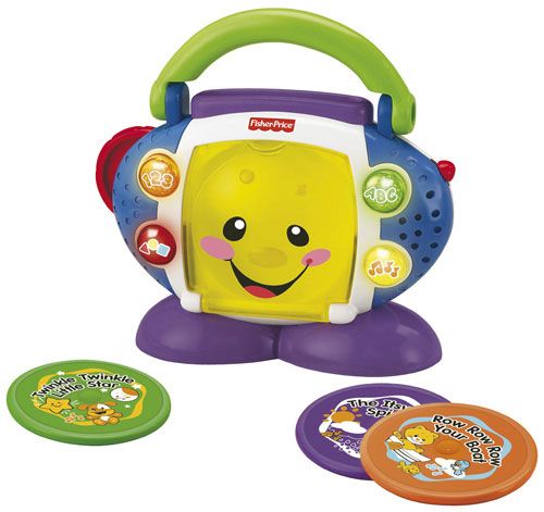 Nombreuses chansons, phrases et activités. Inclus 3 disques à introduire dans le lecteur. Lorsqu'on ouvre le lecteur, surprise ! les CD tombent. Bébé peut appuyer sur n'importe lequel des 4 boutons pour déclencher des lumières, des phrases et des chansons et pour apprendre l'alphabet, les chiffres, les couleurs et plus encore 6 mois et + 3xLR06 incl.