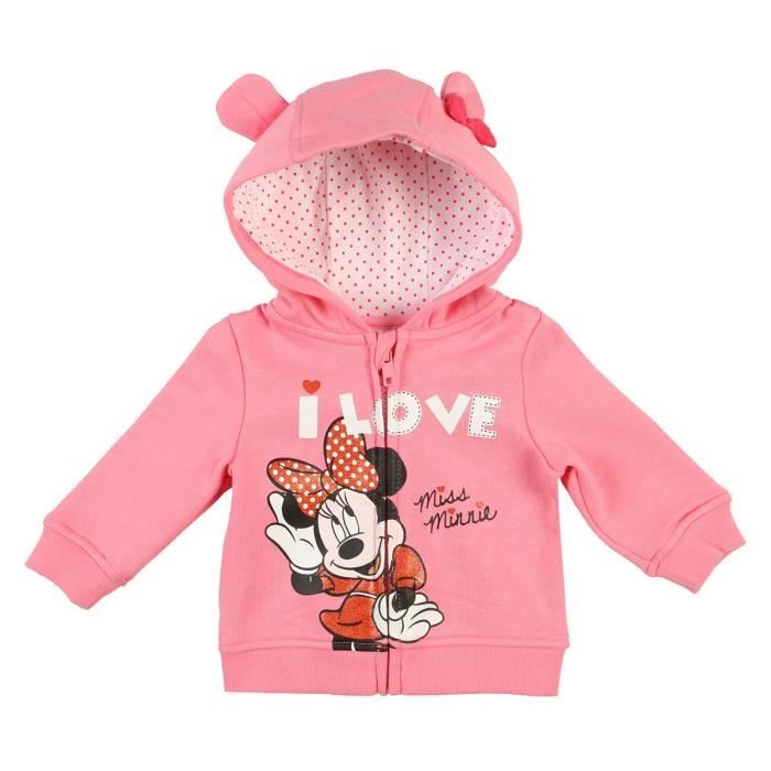 Veste a capuche, 100 % coton, fuschia. Manches longues, bords en côtes, zip., sérigraphie pailletée. Trop chou les petites oreilles sur la capuche.