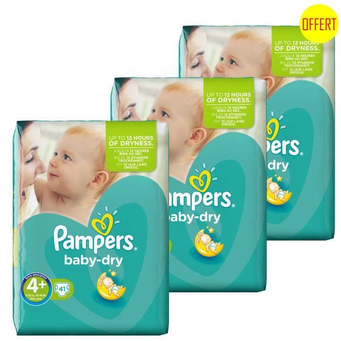 • PAMPERS Baby Dry Taille 4+ (Maxi+) 9 a 20 kg Géant 3x41 couches