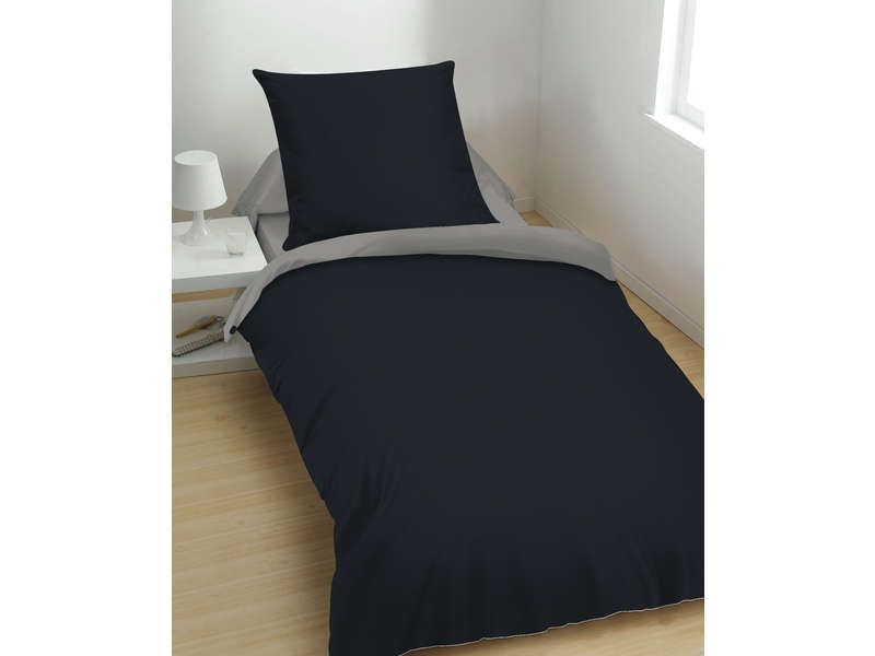 • Parure housse de couette 140x200 cm + 1 taie d'oreiller 63x63 cm BICOLORE coloris charbon/gris clair