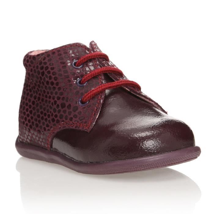 Botillons Bébé tige moyenne en cuir lisse et croûte de cuir avec un aspect verni, coloris prune.