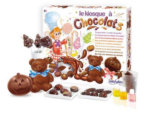 Grâce aux ustensiles, arômes, moules, perles, caramel pétillant et transfert décoratif, l'enfant se transforme en maître chocolatier et confiseur pour le plus grand plaisir de toute la famille. Avis aux gourmands et aux Gourmets !