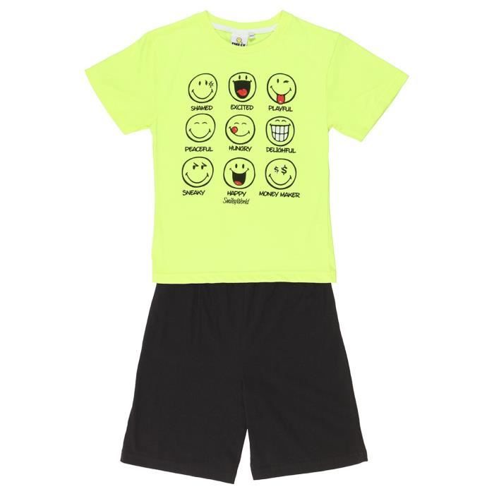 Pyjama court, T-shirt jaune 100% coton, col arrondi, manches courtes. Short assorti.