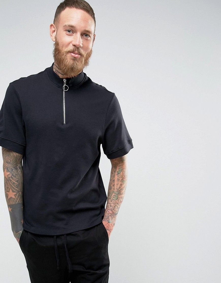• Kiomi - T-shirt avec demi-patte à fermeture éclair - Noir