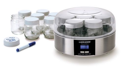 Lagrange Yaourtière. Programmable jusqu´à 15h, sonne à la fin du programme, 7 pots en verre fourni.