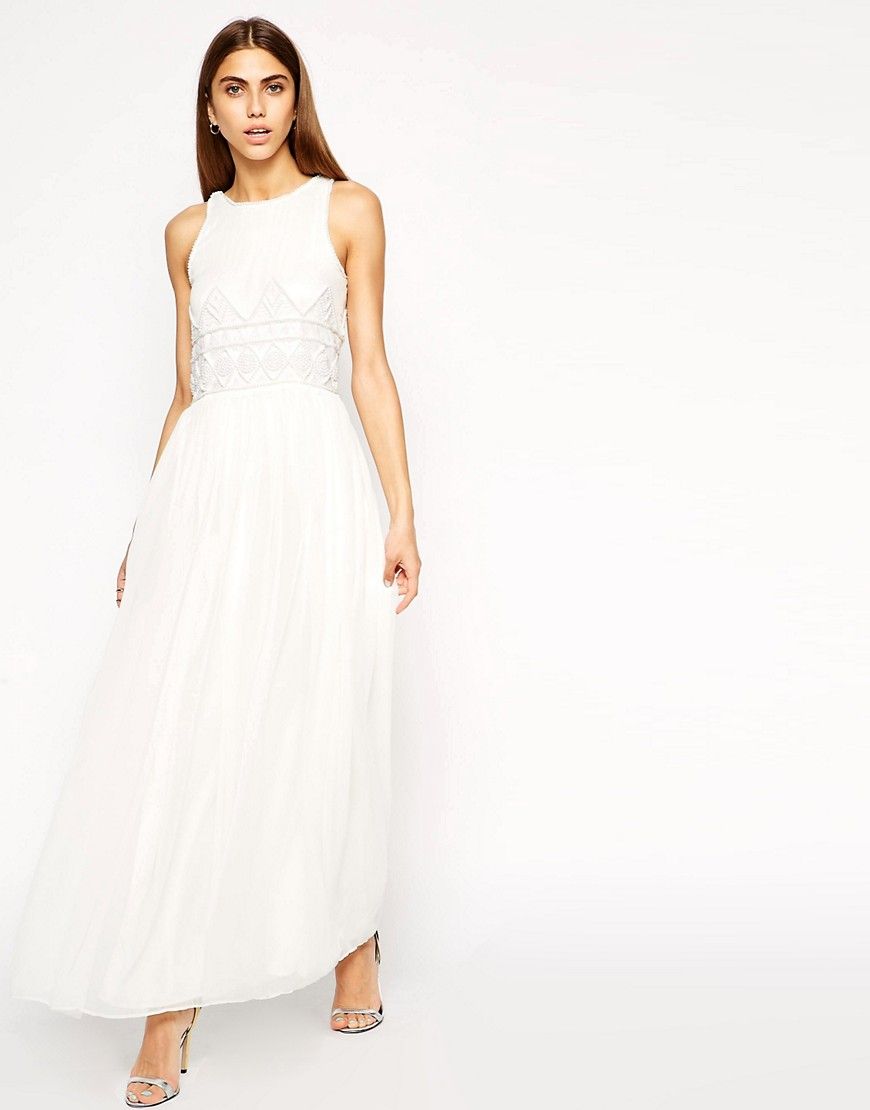 "Maxi robe par Lashes of London, Mousseline transparente, Encolure ras du cou, Corsage orné de perles, Fermeture éclair au dos, Doublure soyeuse, Coupe classique taillant normalement, Lavage en machine, 100% polyester, Le mannequin porte l'article en taille UK 8/EU 36/US 4 et mesure 176 cm (5'9,5"). À PROPOS DE LASHES OF LONDON Lashes of London incarne une vision fraîche de la mode à travers une collection de robes de soirée assortie de jolies pièces dépareillées, comme des tops, jupes et combishorts de style rétro. Puisant son inspiration des brocantes de Los Angeles aux musées parisiens, la marque Lashes of London apporte sa touche unique marquée par des influences à la fois vintage et streetwear, avec des collections tendance sans cesse renouvelées."