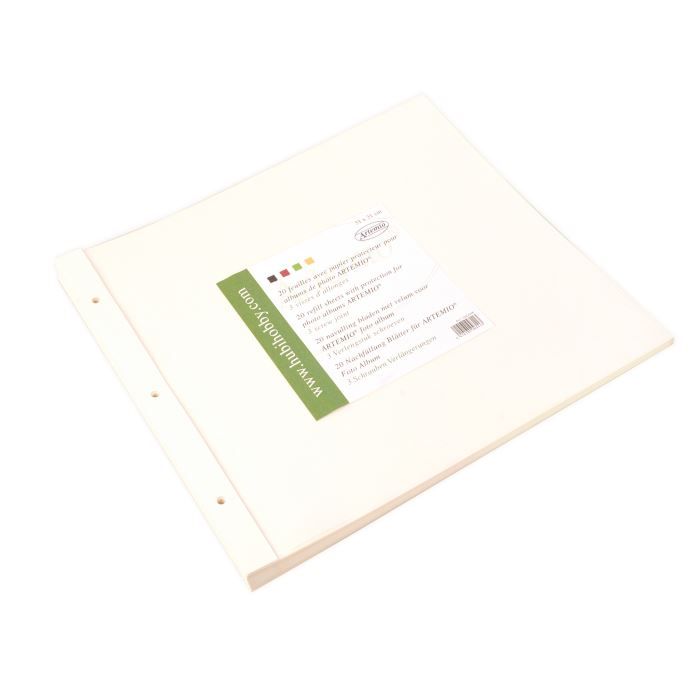 Recharge comprenant 20 pages de papier ivoire sans acide + 20 pages calques intercalaires + 3 vis d'extension.