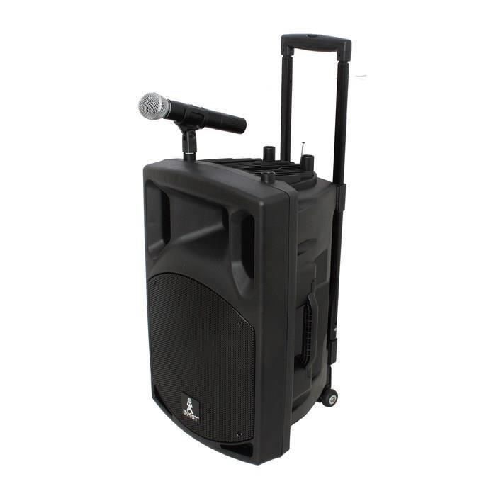 BOOST PORT12VHF-BT - Systeme de sonorisation - Portable et autonome - Enceinte 12'' (30cm) - 2 Micros VHF - Puissance audio : 350W RMS (700W max.) - Batterie rechargeable - Lecteur MP3 USB / WMA / BLUETOOTH - Fonction d'enregistrement REC et VOX - Double alim : 200V et 12V - Port USB - Entrée micro et ligne - Entrées MP3 & iPod - Sensibilité : 97dB - Bande passante : 40Hz - 20kHz - Télécommande - Garantie 1 an
