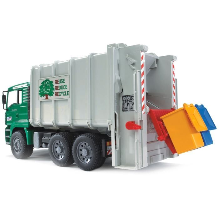 Bruder - Bruder - Camion poubelle - Ce Camion Benne dispose d'un systeme arriere de chargement des poubelles et d'un hayon ouvrable pour le déchargement des déchets - Garçon - A partir de 3 ans - Livré a l'unité