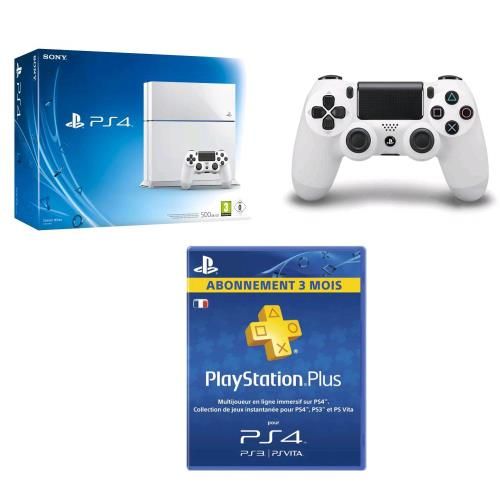 Console PS4 Sony 500 Go Blanche + 2ème Manette Dual Shock 4 Blanche + Abonnement 3 mois LiveCard PS+