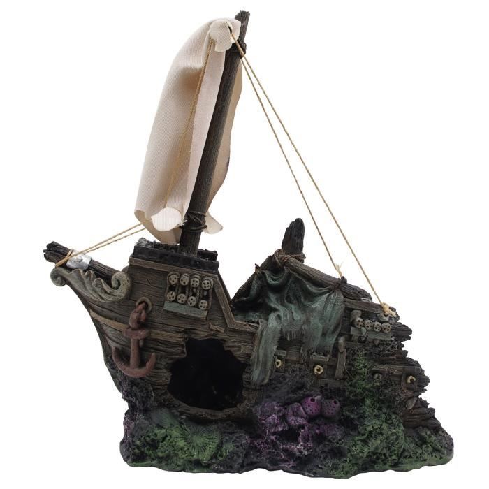 Épave de bateau Marina du 19e siecle avec voile et câbles, pour un look authentique. Dimensions : 13,5 x 10 x 22 cm. Faits de polyrésine non toxique, ces épaves de bateaux et bois de greve transforment votre aquarium afin de refléter le mystere que représente le fond de l'océan.