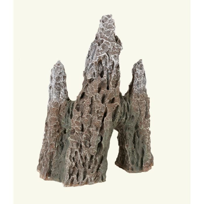 Faits d'un matériau non toxique, les ornements n'alterent pas l'équilibre chimique de l'eau. Formation rocheuse Naturals Marina avec 3 sommets, format moyen - L. 16,5 x l. 10,2 x H. 22,9 cm.