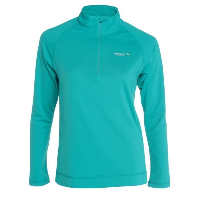 Maillot 100% polyester, bleu, fermeture zippée a mi-hauteur, col montant. Manches longues.