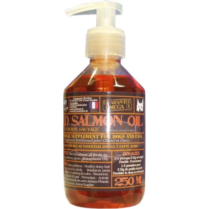 Huile de saumon sauvage pour chiens et chats - Riche en oméga 3 - Pour une peau saine, un pelage soyeux, le renforcement des fonctions immunitaires - Diminue les problemes d'arthrite, protege les articulations.