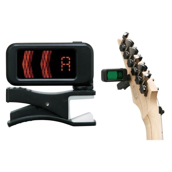 Fixation a clip, pour guitare et basse, permet de s'accorder grâce aux vibrations ou grâce au microphone intégré, Écran LCD orientable 4 positions.