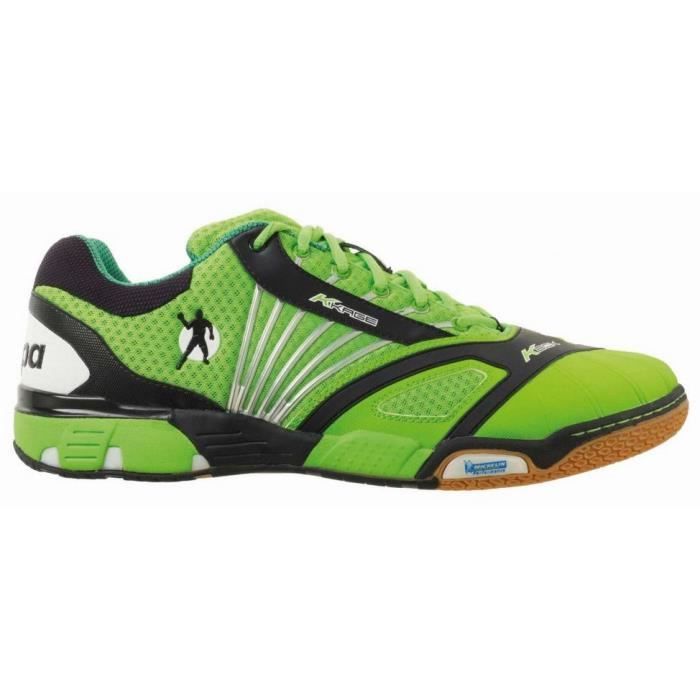 Chaussures Handball avec tige en PU, vert et noir, semelle intérieure en textile, semelle extérieure en caoutchouc. Fermeture par lacets.