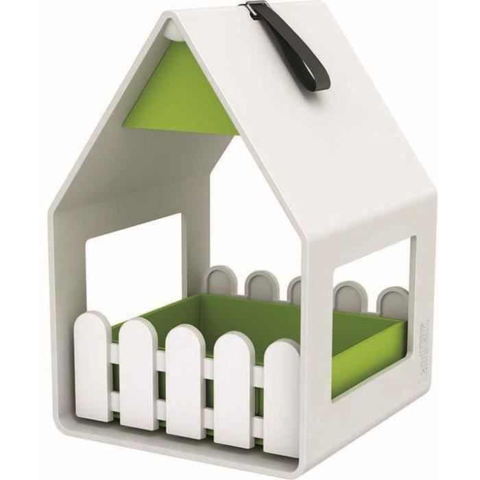 LANDHAUS Mangeoire blanc vert en polypropylene pour oiseau.