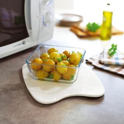 Cette plaque en céramique passe au micro-ondes pour ensuite garder ...