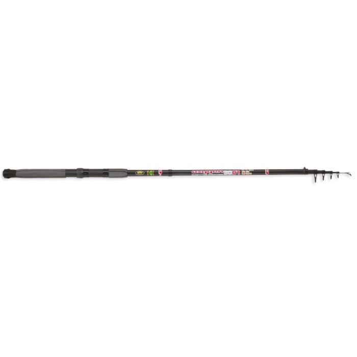 Canne a peche carbone avec anneaux collés, porte-moulinet a vis, noir, 2,40 m, jusqu'a 60 g, 6 sections.