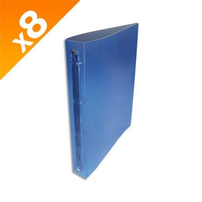 En polypropylene 6/10e ultra résistant, indéchirable Mécanisme 4 anneaux ronds Dos 4 cm Diametre des anneaux : 30 mm Dimensions : 32 x 26 cm Bleu
