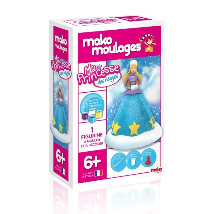 Mako Moulages Ma Princesse des Neiges - Lot contenant 1 moules en latex de 7 cm, 4 mini pots de peinture, 1 sachet de plâtre refermable zippé de 150g, 1 pinceau, 4 croisillons - Fille - A partir de 5 ans - Livré a l'unité