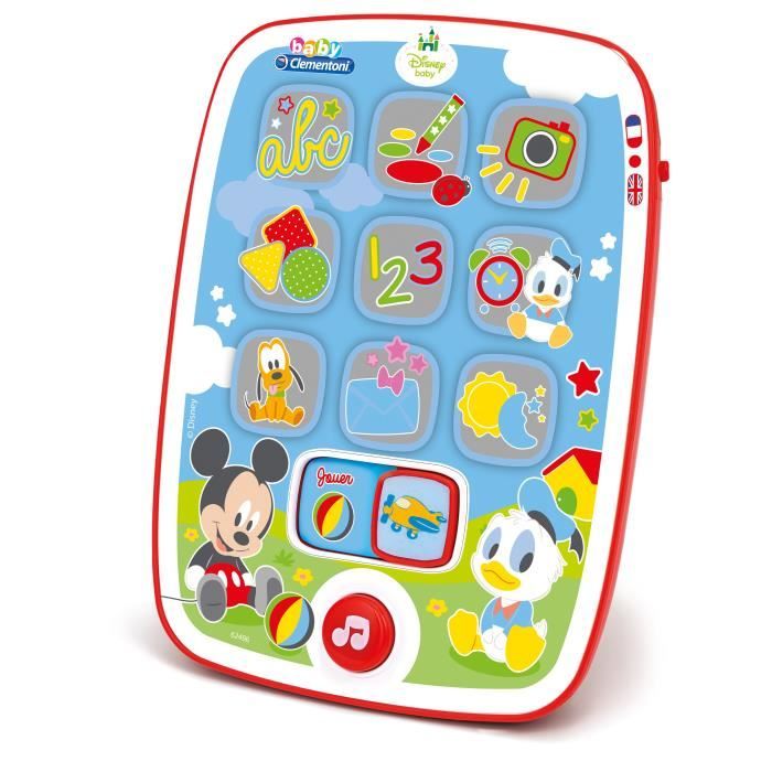 Clementoni - Tablette Baby Mickey - 9 boutons lumineux pour découvrir les lettres, les nombres, les formes, les couleurs.... 1 bouton pour la musique - 2 modes de jeu a sélectionner : Joue et Apprends et sélecteur français-anglais - Développement du langage, de la vue, de la dextérité - Mixte - Des 6 mois - Livré a l'unité