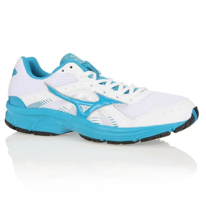 Chaussures de running avec tige en mesh, blanc et turquoise, semelle extérieure en caoutchouc, semelle intermédiaire systeme Wave garantit une excellente stabilité, semelle intérieure en textile, fermeture par lacets.