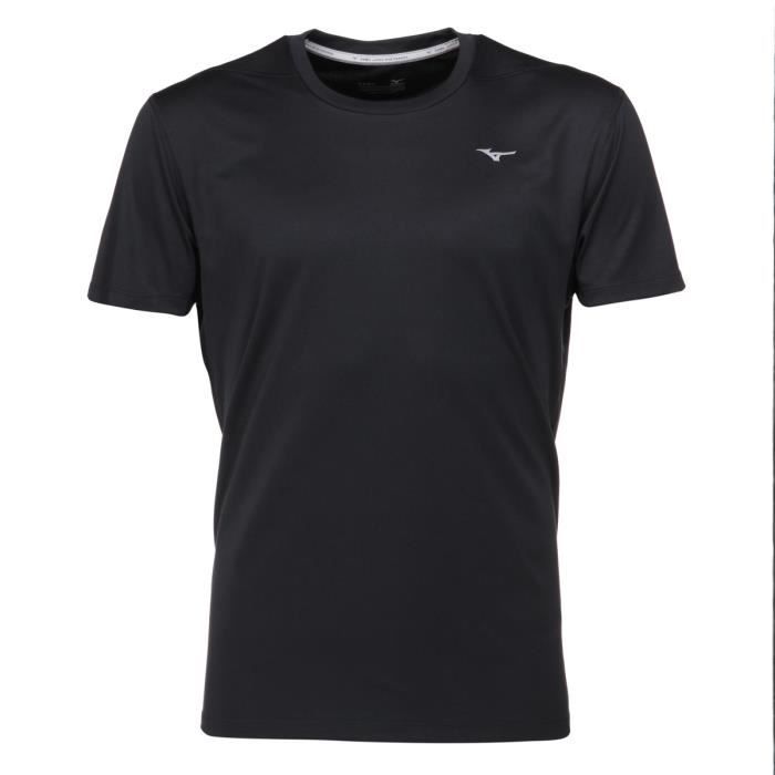 Maillot de running 100% polyester, noir et blanc, col arrondi. Manches courtes.