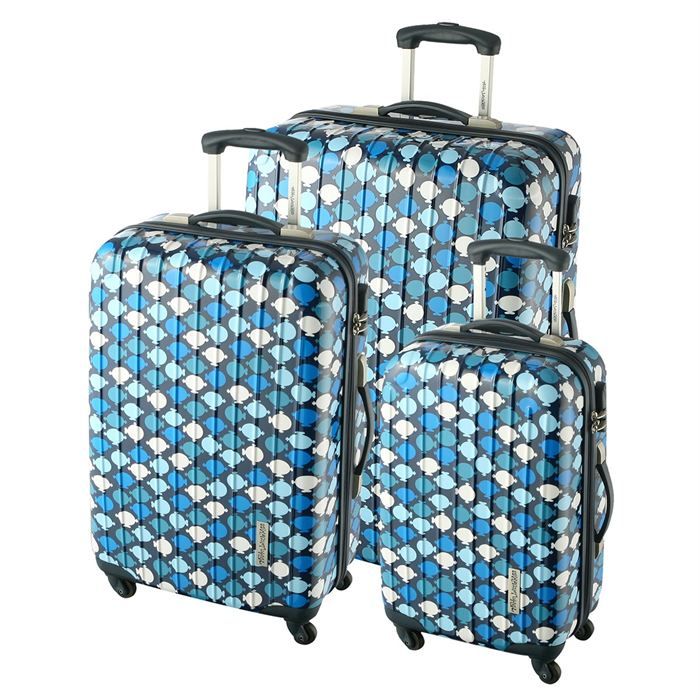 Collection MUC. Coloris : bleu. Set de 3 valises trolley 4 roues, signé Monsieur Madame. Look moderne pour ce set a l'imprimé pop! Trois formats : cabine, intermédiaire et maxi. Aussi esthétique que fonctionnel, ce set deviendra votre compagnon idéal lors de vos déplacements!