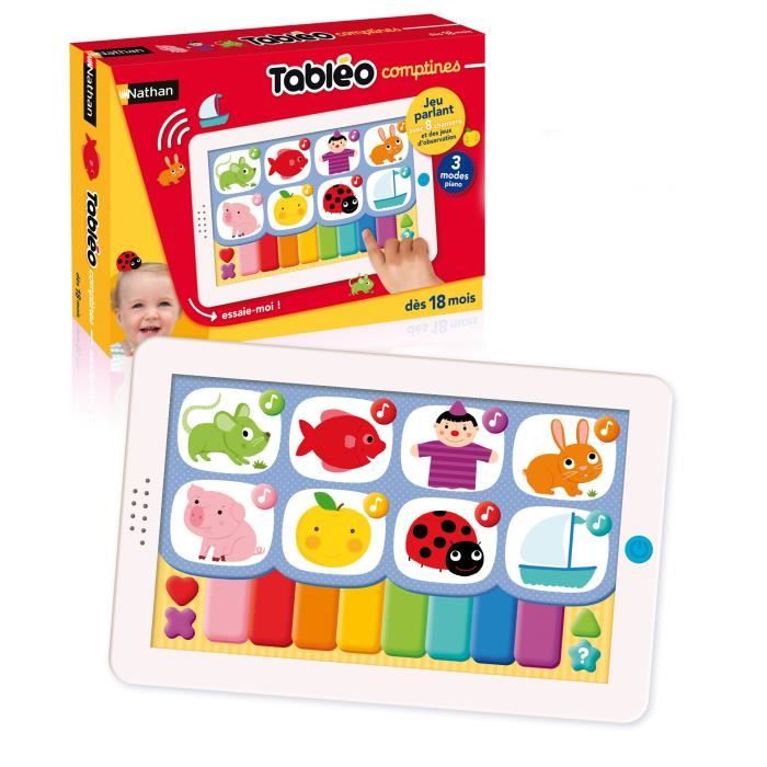 Un jeu interactif pour découvrir et chanter 8 comptines incontournables, jouer de la musique avec le petit piano et s'amuser a répondre aux questions. 8 comptines : Une souris verte, Ainsi font, font, font, Mon petit lapin... 3 modes piano : musique, bruits rigolo, cris des animaux. 1 mode question. Mixte. A partir de 18 mois. Livré a l'unité.