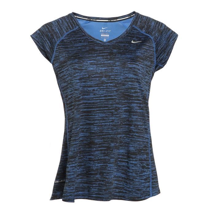 T-shirt col V, 100% polyester, tissu Dri-Fit, marine. Manches courtes.