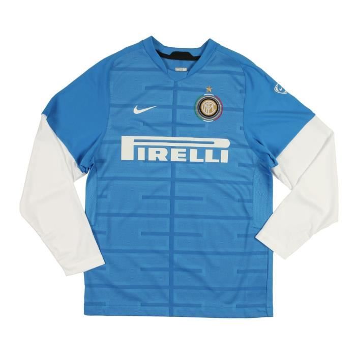 Maillot d'entrainement 100% polyester, bleu et blanc, col V, logo Inter Milan. Manches longues.