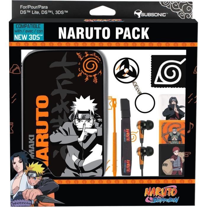 Le pack complet Naruto Sacoche rigide pour consoles 3DS(TM)/DS(TM) i/DS(TM) Lite Ecouteurs stéréo intra-auriculaires 3 boîtiers range-jeux Stylet télescopique pour New 3DS /3DS(TM)/DS(TM) i/DS(TM) Lite Dragonne Lingette microfibre Porte clefs personnalisé