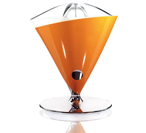 Vita est le presse-agrumes qui voltige. Le processus naît par la manière naturelle du geste manuel de presser et verser. Le corps est lié à la base par un tige en métal, et peut tourner à 60 degrés, en permettant le versement du jus. La rotation du presse-agrumes est contrôlé par un système sophistiqué qui balance les poids des composants et entraîne un mouvement fluide et délicat. Lutilisation est simple et fiable, elle seffectue en toute sécurité. La sensation éprouvée lors de prise manuelle est agréable, fixe et précise. Le système de décrochage est réglé et activé par le bouton sur le corps. Le presse-agrumes fonctionne avec un mouvement rotatif de 90/95 rotations par minute. Il est doté de deux aléseurs de différents diamètres pour presser tous les agrumes : citrons, oranges, pamplemousses. Tous les composants en contact avec les agrumes et le jus sont blancs, ils offrent lavantage dun système Anti-Allergies. Ils sont amovibles, pour garantir un nettoyage facile et soigné. Couleur : Orange - Brillant