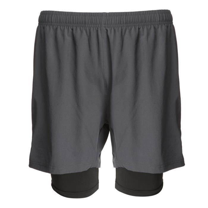 Short de running 100% polyester, gris, taille élastiquée avec cuissard intégré. Short de Running pour la pratique de la course a pied. Un short large et agréable pour courir. Il dispose d'une petite poche zippé a l'arriere pour ranger clefs ou carte de credit avec un cordon de serrage a la taille.