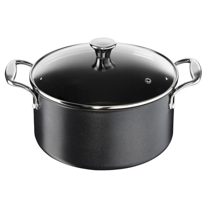 Faitout TEFAL HERITAGE tous feux dont induction de 24cm de diametre avec couvercle en verre. En aluminium, intérieur antiadhésif. Coloris noir.