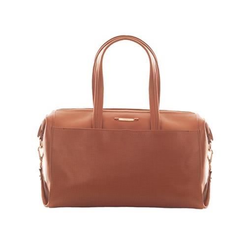 Sac porté épaule en cuir marron, fermeture zippée. Deux anses et une bandouliere amovible. Un compartiment principal.